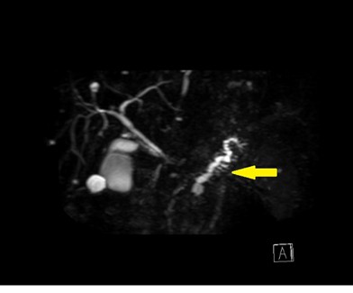 @先ほどの症例のMRCP画像。膵管の拡張がありました。