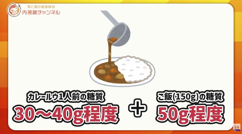 画像にもあるように、カレーライス1食分の糖質量は驚くほど多いです。