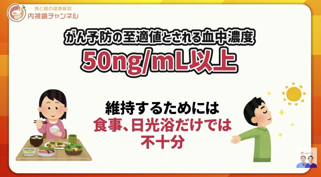 とされており、食事や日光だけでは到達が難しいため、サプリメントの活用が推奨されます。