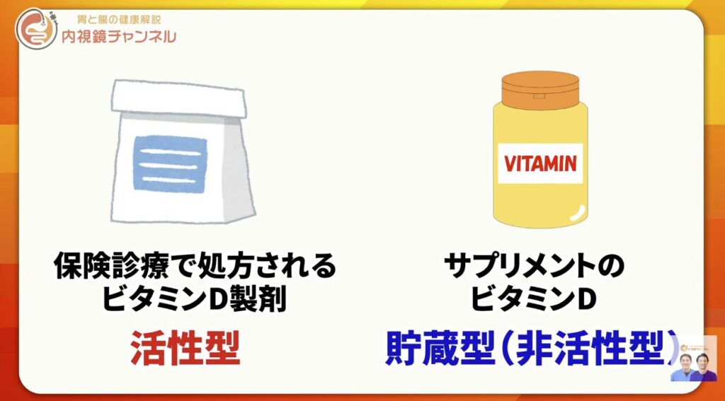 実は、骨粗鬆症の治療などで保険処方されるビタミンDと、サプリメントで摂取するビタミンDは、体内での種類と役割がまったく異なります。