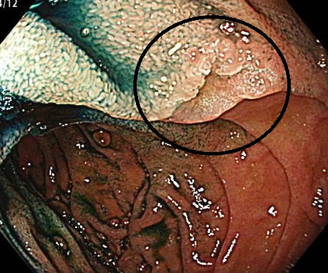 定期検査で粘膜の微小な変化を拾い、内視鏡治療で完治が見込めた症例。