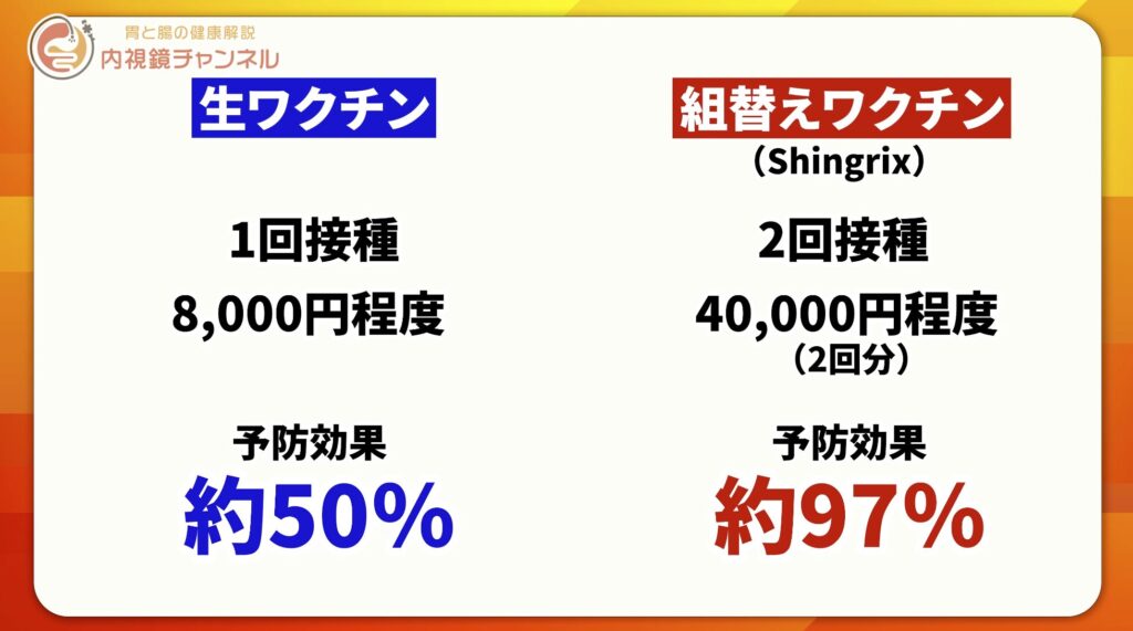 現在、日本で使用できる帯状疱疹ワクチンは2種類あります。